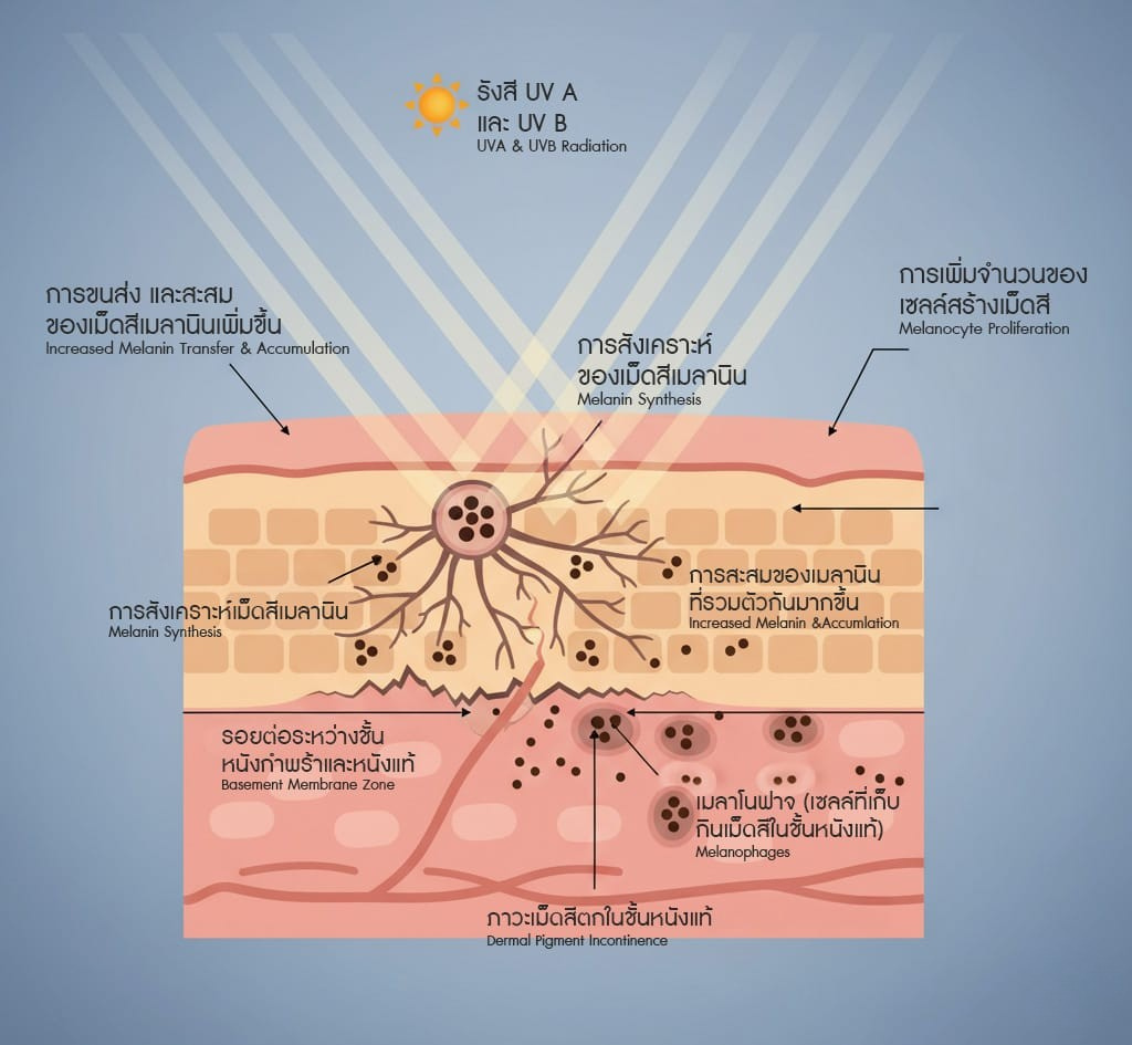 ยับยั้งกระบวนการสร้างเม็ดสี (Inhibition of Melanogenesis) :